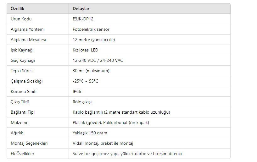 NPN NC (Normally Closed) çıkışı sayesinde güvenlik senaryolarında tercih edilir.